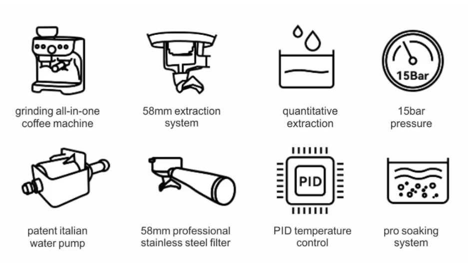 19-Bar Automatic Stainless Steel Espresso Machine with Built-In Grinder & Milk System for Home and Commercial Use